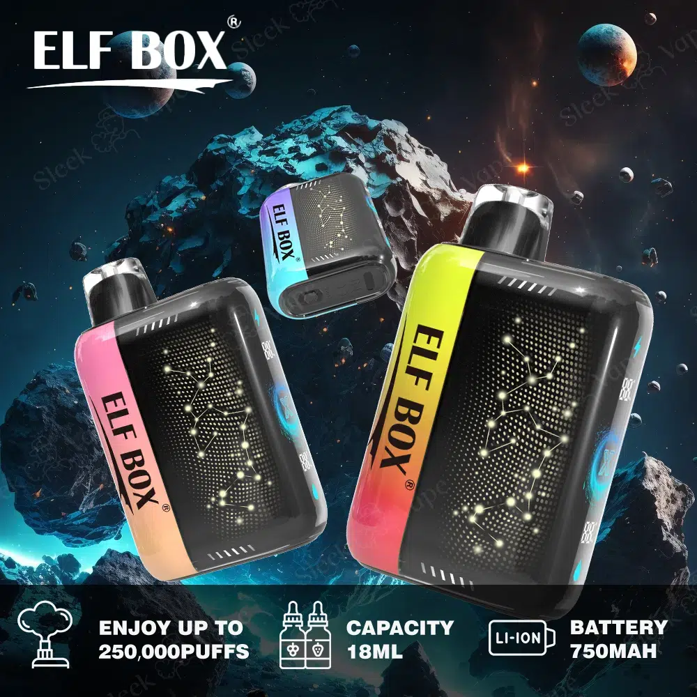 Раскройте ELF BOX PULSE X 25000 25k PuffsПотрясающий одноразовый вейп с 25000 затяжками и звездным дизайном. Каждая затяжка освещает ваш опыт благодаря гладкому 3D изогнутый экран и передовые функции, идеально подходящие для тех, кто жаждет стиля и производительности.