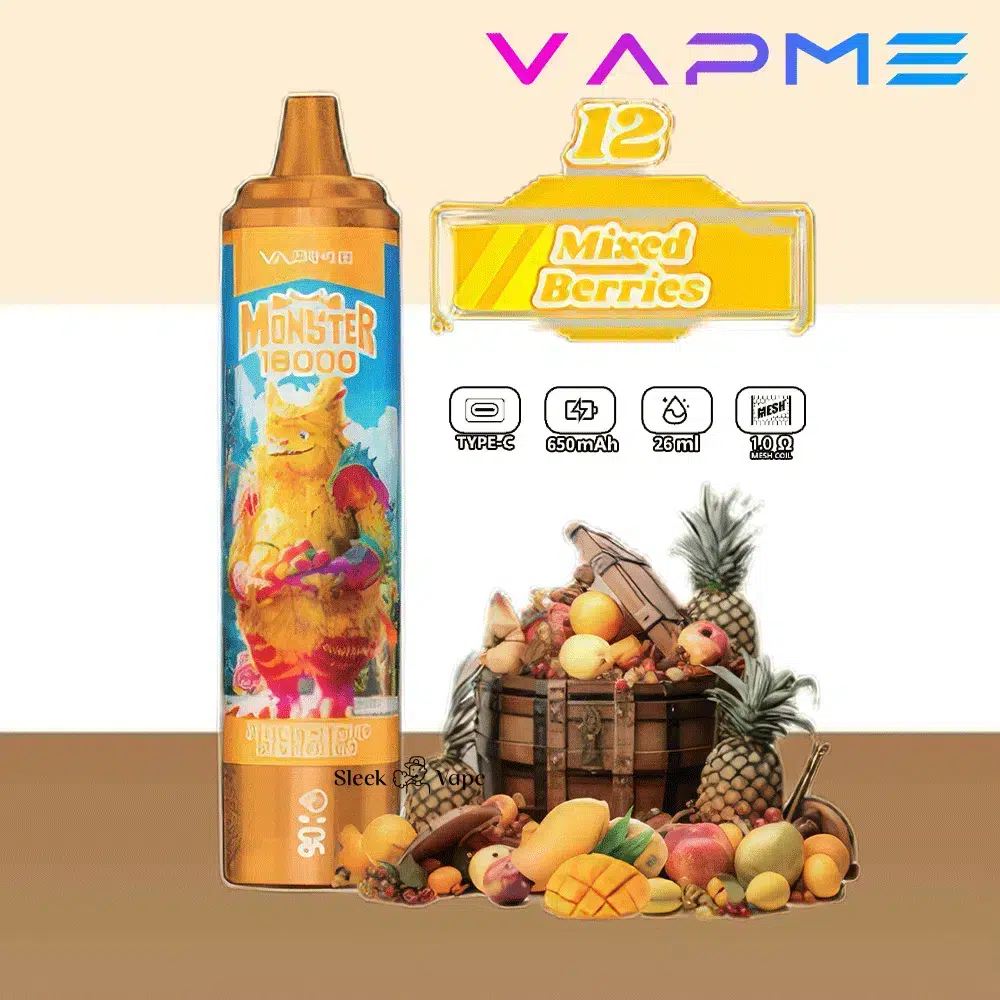Finding the right flavor can make or break your vaping experience. The VAPME Monster offers 12 vibrant options, each crafted to deliver authentic taste. From fruity blends to icy twists, there’s something for every mood. Here’s the lineup: