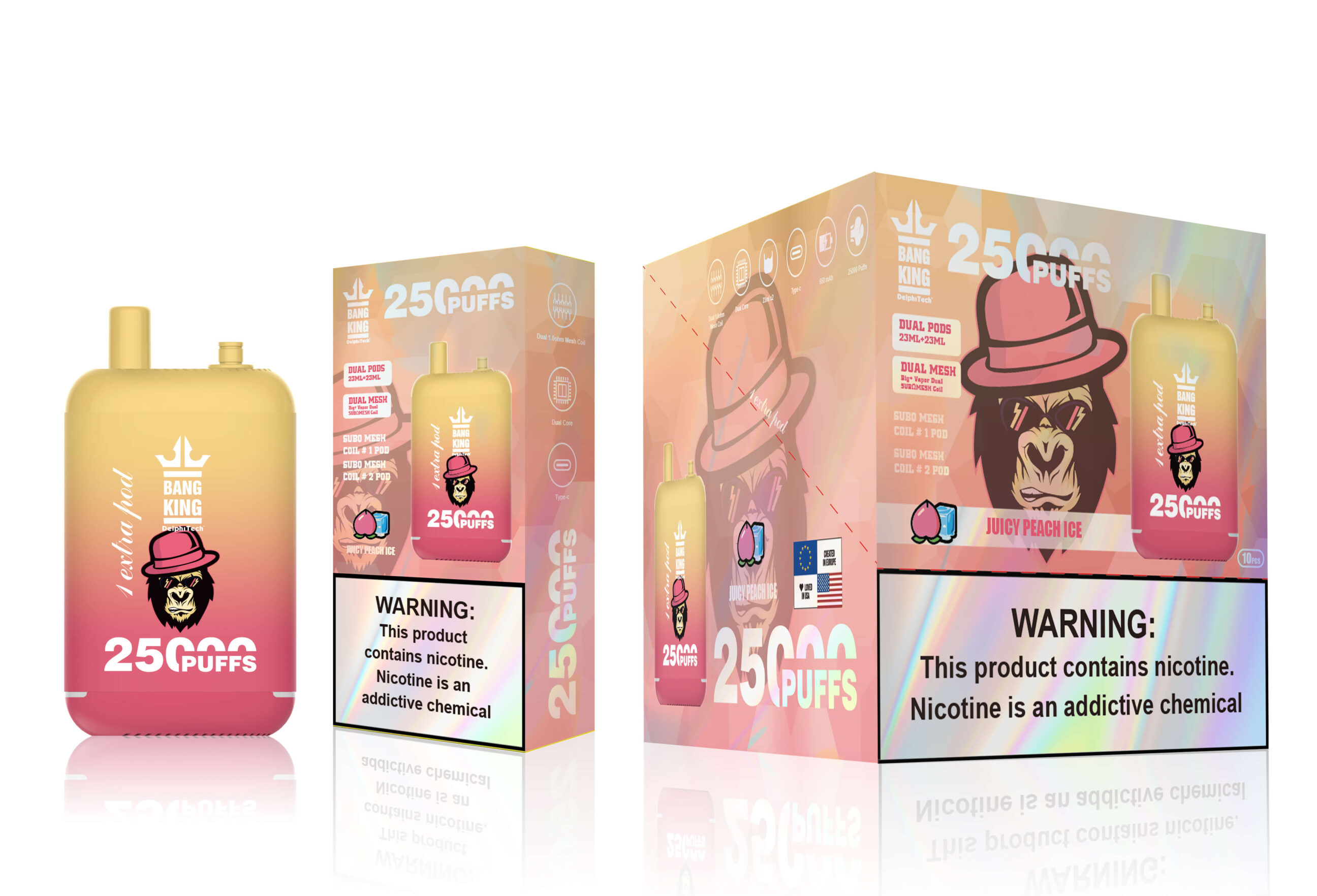 Available in 0%, 2%, 3%, or 5% nicotine strengths, the Bang King 25000 caters to various preferences. Whether you’re quitting smoking or enjoying casual vaping, these options help you control your intake safely and effectively.