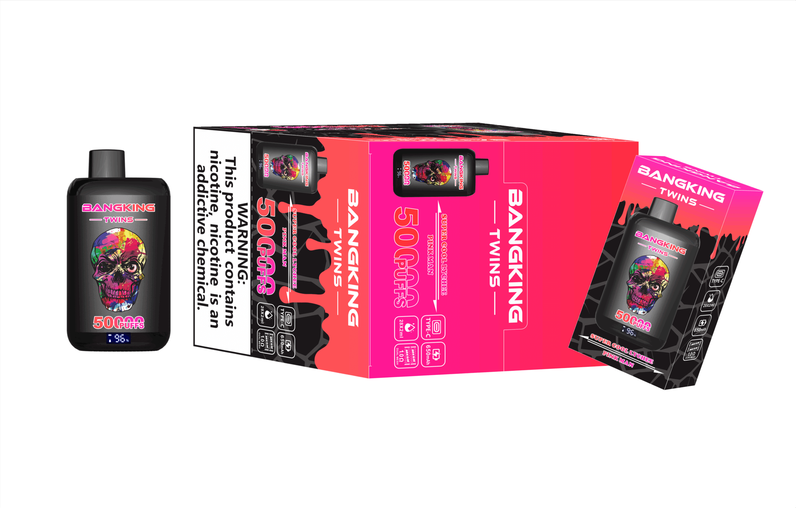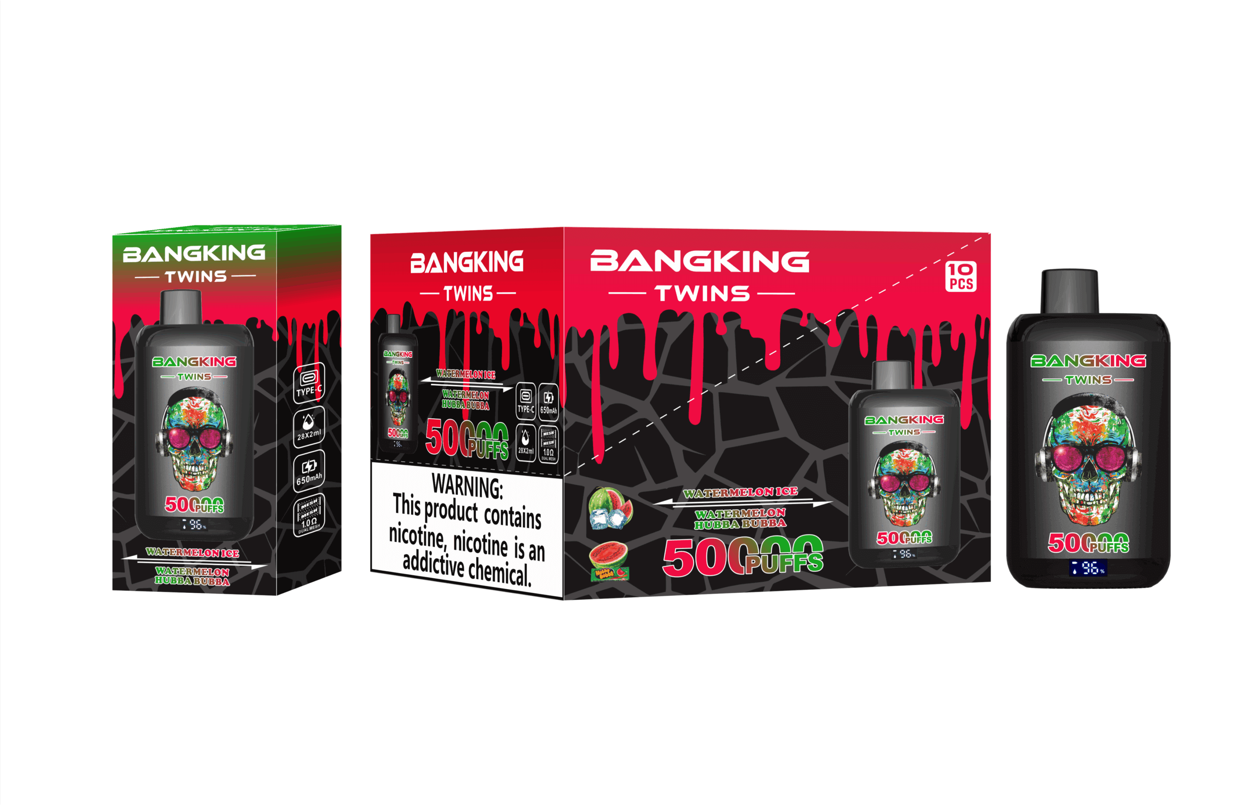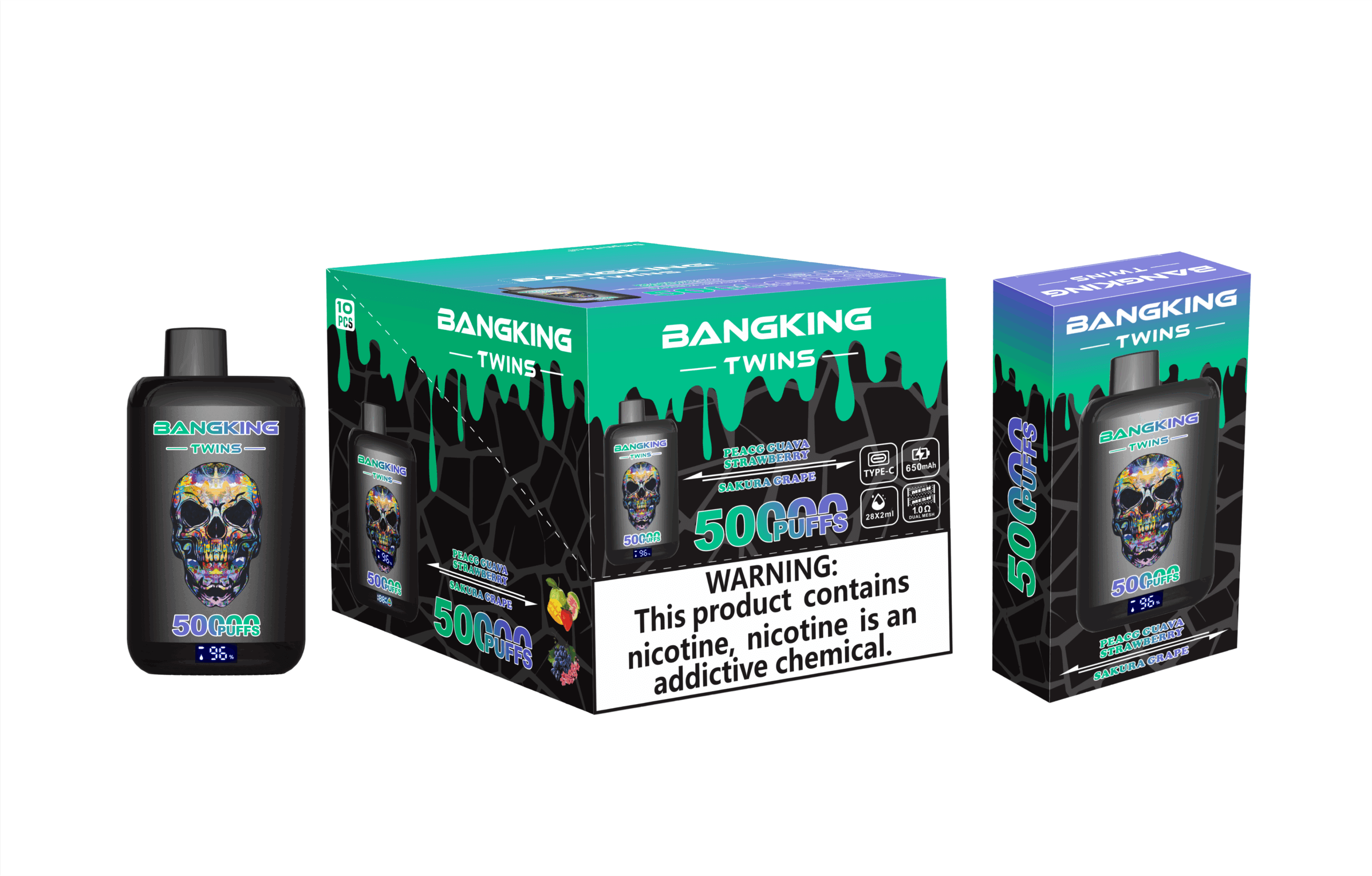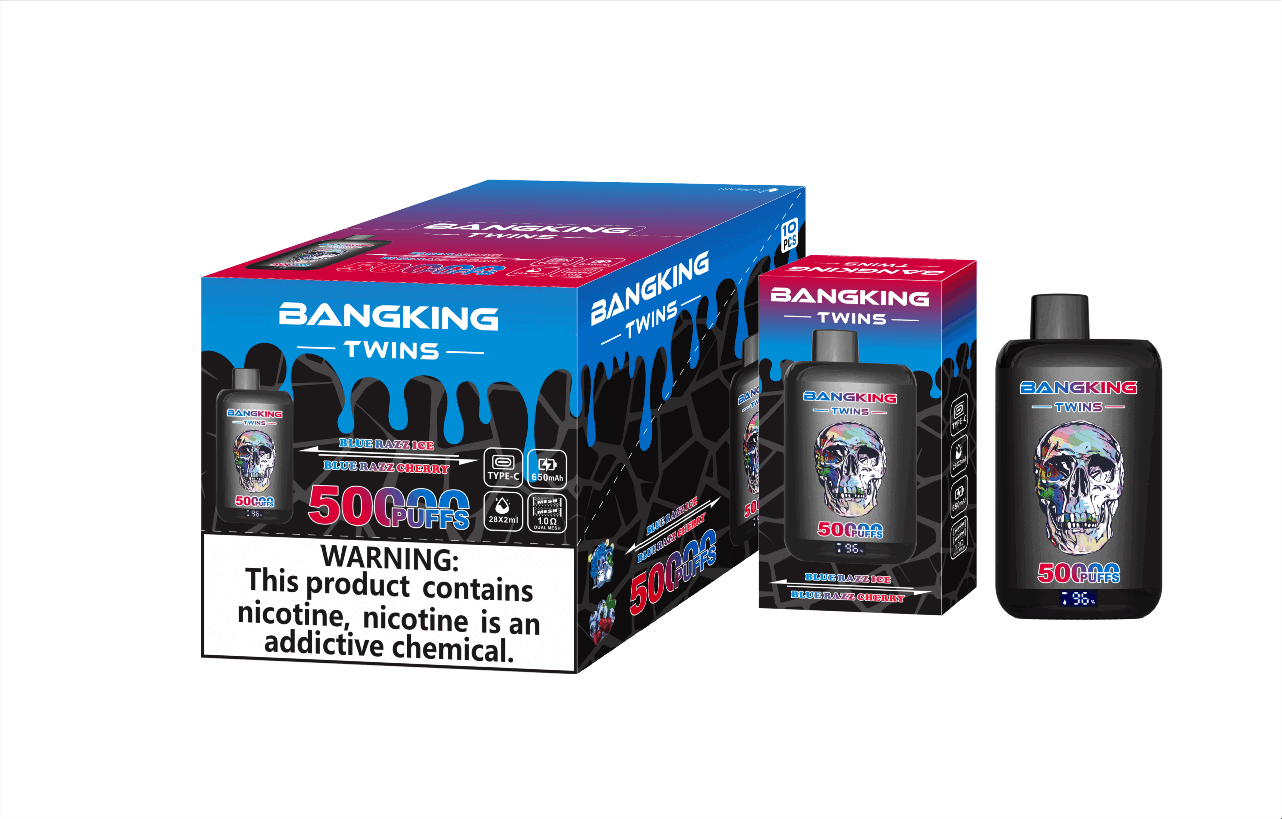 Bang King Twins 50K Puffs za enkratno uporabo Vape Opis izdelka